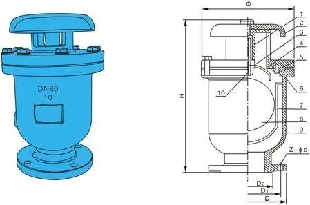 2. The exhaust port is divided into three sections and adopts a differential control structure. According to the working period of the water supply system, it meets the functions of large exhaust volume, high pressure exhaust volume, two-phase flow restart exhaust, and damping exhaust when the water column is closed.