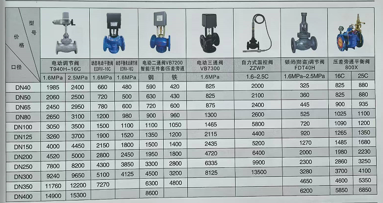 平衡閥價格表